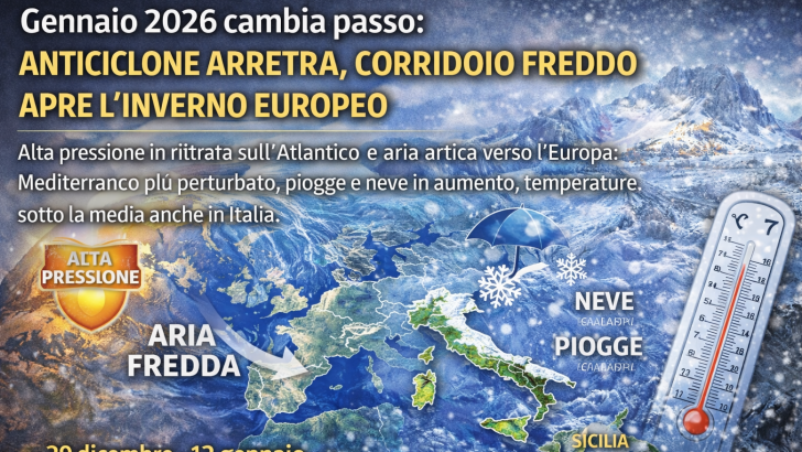 Roma - Alta pressione in ritirata sull’Atlantico e aria artica verso l’Europa: Mediterraneo più perturbato, piogge e neve in aumento, temperature sotto la media anche in Italia. Le proiezioni a lungo termine dei principali modelli meteorologici indicano un possibile cambio di scenario tra la fine del 2025 e l’inizio di gennaio 2026. Dopo una fase...