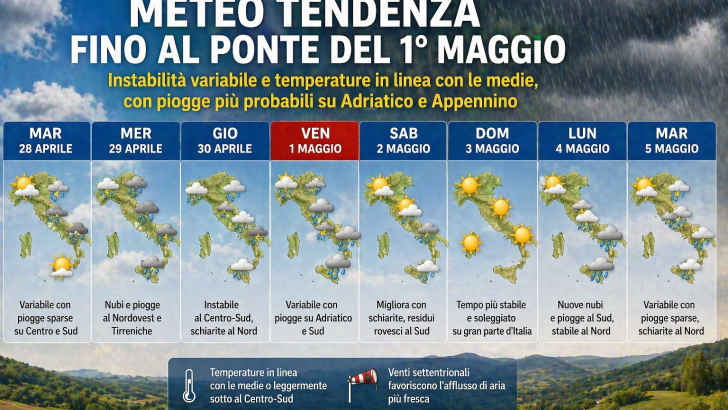 Roma - Una fase perturbata condiziona gran parte della Penisola con piogge diffuse e calo...
