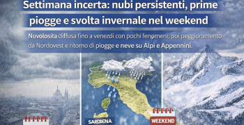La nuova parentesi di alta pressione, tuttavia, non sarà del tutto inattaccabile. Masse d’aria più umide, in risalita dal Mediterraneo, tenteranno nel corso della settimana di indebolire il campo anticiclonico. Pur senza determinare un vero peggioramento, tali infiltrazioni riusciranno a provocare un aumento della nuvolosità soprattutto al Nord e sulle regioni tirreniche centro-settentrionali, accompagnato da piogge deboli e locali. Sul resto del Paese prevarranno invece condizioni asciutte e soleggiate.