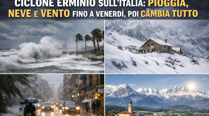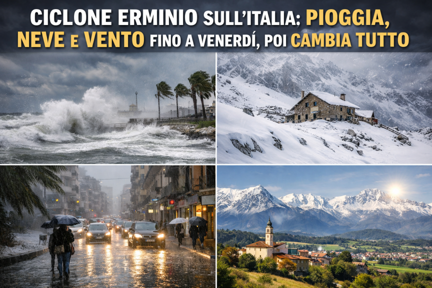 Il ciclone Erminio continua a influenzare il meteo sull’Italia, mantenendo condizioni di instabilità diffusa soprattutto sulle regioni del Centro-Sud e lungo il versante adriatico. Il sistema depressionario si muove lentamente dal Sud verso i Balcani, con il suo centro atteso tra lo Ionio e la Grecia entro venerdì, prolungando gli effetti del maltempo.