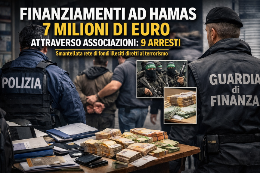 Un’operazione congiunta di Polizia di Stato e Guardia di Finanza ha portato all’esecuzione di nove arresti e a misure cautelari nei confronti di tre associazioni, nell’ambito di un’indagine coordinata dalla Direzione distrettuale antimafia e antiterrorismo di Genova. Al centro dell’inchiesta, un presunto sistema di finanziamento illecito in favore di Hamas, che secondo gli inquirenti avrebbe movimentato oltre sette milioni di euro attraverso circuiti formalmente riconducibili ad attività umanitarie.