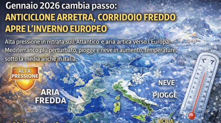 Tra il 5 e il 12 gennaio, secondo le attuali elaborazioni, gli anticicloni resterebbero defilati per periodi più lunghi, stazionando prevalentemente sul Nord Atlantico. Questo assetto favorirebbe la reiterazione di impulsi artici diretti verso l’Europa centro-meridionale e l’area mediterranea, con nuove fasi di maltempo, nevicate anche a quote relativamente basse e un clima marcatamente invernale.