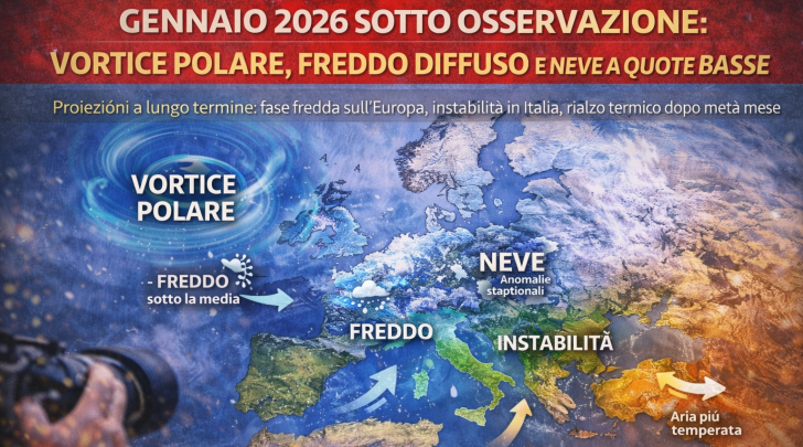Le proiezioni dei modelli indicano un avvio di gennaio dinamico: irruzioni fredde sull’Europa, instabilità in Italia, poi graduale rialzo termico e correnti più occidentali