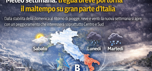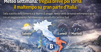 Le temperature subiranno un calo significativo, con diminuzioni fino a 10°C al Centro-Nord e in Sardegna. Al Sud, invece, i valori termici rimarranno sopra la media stagionale.