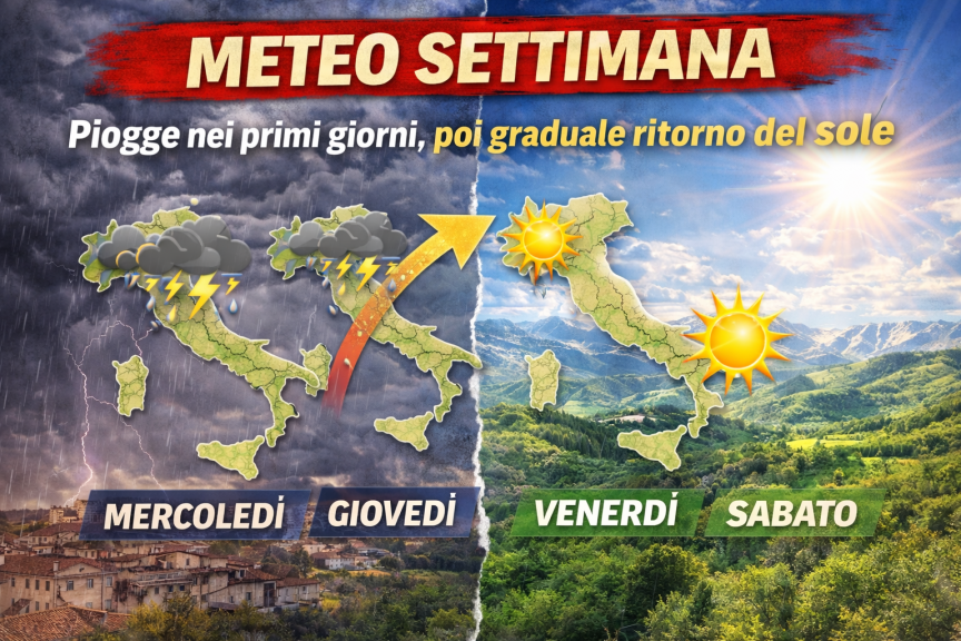 Instabilità diffusa nei primi giorni, poi graduale ritorno dell’alta pressione con clima più mite e condizioni più stabili su gran parte della Penisola.