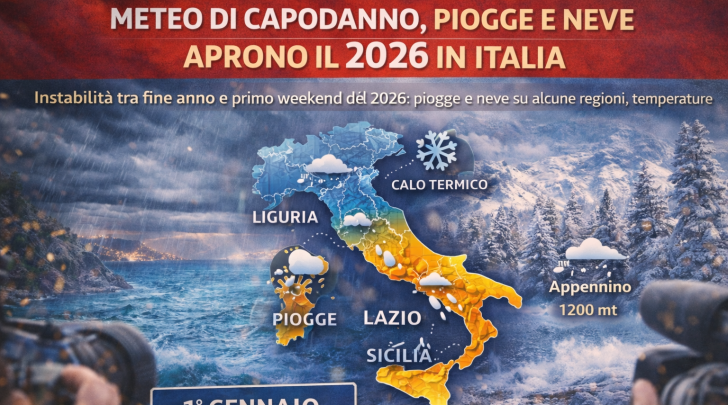Nel corso di Capodanno è atteso un peggioramento soprattutto sulle regioni tirreniche centro-settentrionali, per l’attivazione di correnti sudoccidentali umide. Le prime piogge interesseranno la Liguria di Levante e la Toscana già dal mattino, per poi estendersi tra pomeriggio e sera anche al Lazio, all’alta Campania e alla Sicilia occidentale. Sul resto del Paese il tempo resterà più stabile e soleggiato, con un aumento della nuvolosità solo in Val Padana.