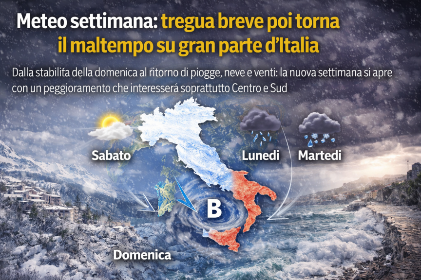 Il quadro meteo della prossima settimana si presenta dinamico e in continua evoluzione, con una breve fase di miglioramento seguita da una nuova perturbazione destinata a riportare piogge, neve e instabilità su diverse aree del Paese.
