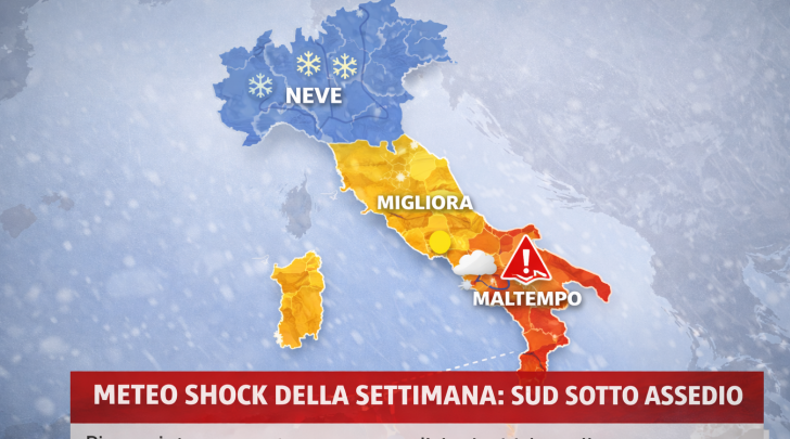 Al Nord prevarranno addensamenti residui su Piemonte ed Emilia-Romagna, ma senza fenomeni di rilievo, con schiarite diffuse altrove e temperature in calo, comprese tra 4 e 8 gradi. Al Centro dominerà la variabilità, con ampie aperture sul versante tirrenico e nubi sull’Adriatico, dove non si escludono piogge isolate e neve sporadica in montagna. Al Sud, invece, Sardegna, Sicilia e Calabria ionica saranno interessate da precipitazioni forti e persistenti, con valori termici in diminuzione.