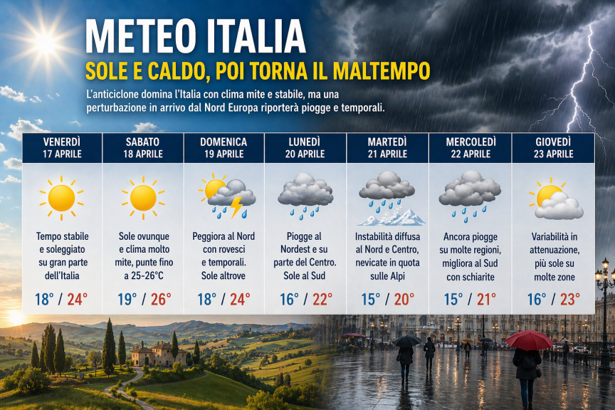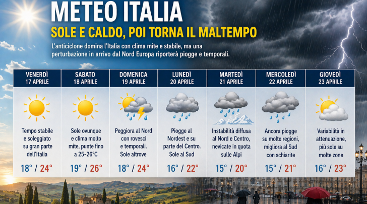 Nel complesso, la tendenza conferma una fase primaverile instabile, con frequenti cambiamenti e una difficoltà nel consolidarsi di una struttura anticiclonica duratura, lasciando spazio a nuove incursioni perturbate anche nei giorni a ridosso del ponte festivo.