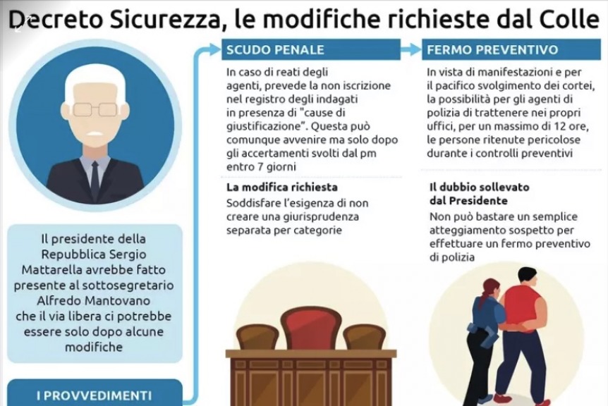 I contenuti sono stati rielaborati dopo una serie di riunioni tecniche seguite ai rilievi istituzionali emersi nelle ultime ore, in particolare su temi sensibili come il fermo preventivo e il cosiddetto scudo penale. Proprio il fermo, ipotizzato nelle prime bozze per soggetti ritenuti potenzialmente pericolosi durante i cortei, è stato oggetto di approfondimenti: la durata prevista di 12 ore è stata giudicata un punto critico e la misura è stata in parte rimodulata.