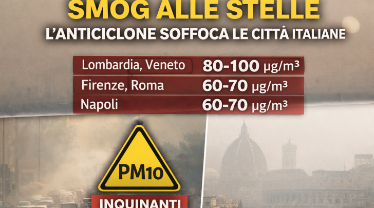 Alta pressione persistente, polveri sottili oltre i limiti europei e concentrazioni record al Nord mentre l’assenza di vento mantiene gli inquinanti nei bassi strati