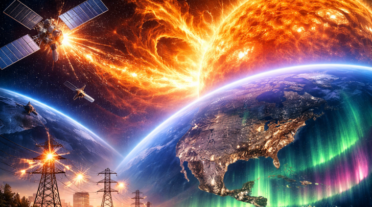 Un’intensa tempesta geomagnetica colpisce il pianeta dopo una violenta eruzione solare, con possibili effetti su reti elettriche, satelliti e comunicazioni, e aurore visibili a latitudini insolite.