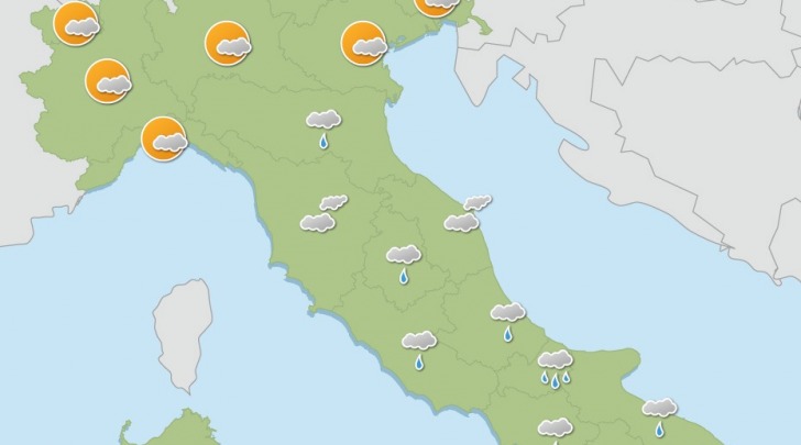 Cielo variabile con deboli piovaschi sul versante tirrenico e episodi sporadici sull’Adriatico.